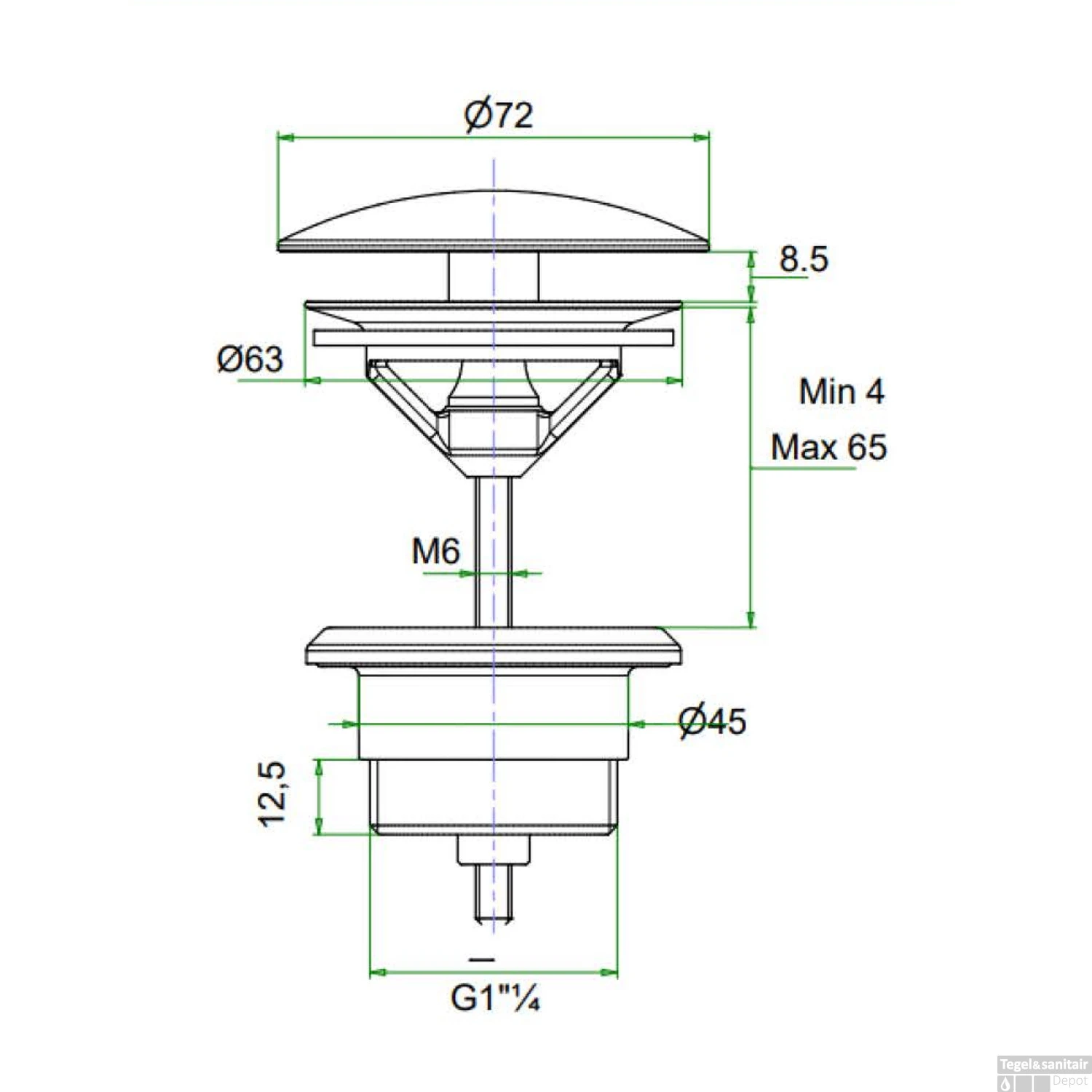 Specificaties Afvoerplug Lagoo Garda Always Open Messing Geborsteld Goud