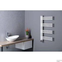 Electrische Radiator Sanicare 111.8×60 Cm 730W Met Chrome Thermostaat En Bluetooth Zilver Grijs