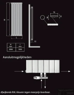 Designradiator Boss & Wessing Nile Gobi 50×80 Cm Wit Zij Aansluiting (Links Rechts Aansluiting)