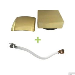 De badplug overloopcombinatie van Wiesbaden bevat ook een badvul-functie. Het bad word gevuld door dit bedieningsknop uitgevoerd in geborsteld messing goud. De badplug overloopcombinatie is eenvoudig te monteren op een inbouw-mengkraan.
