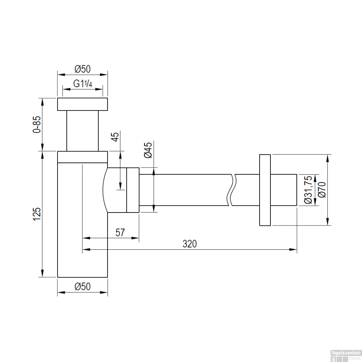 Specificaties Bekersifon Brauer Chrome 5/4 Chroom: