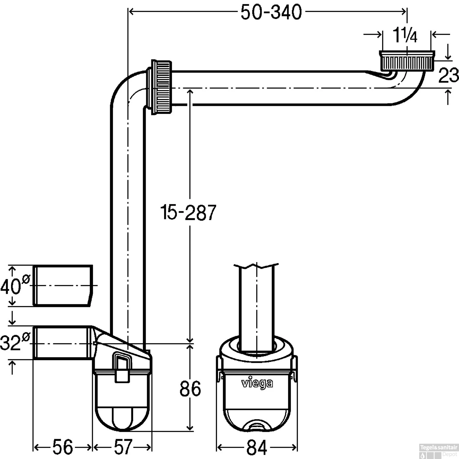 Bekersifon Viega voor Badkamermeubel Verstelbaar Wit