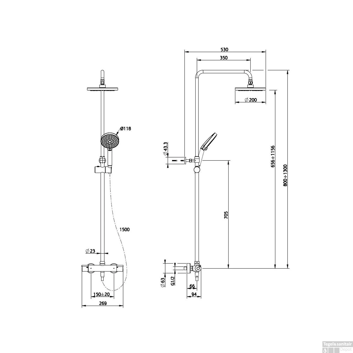 - Regendouche 1 stand, niet verstelbaar