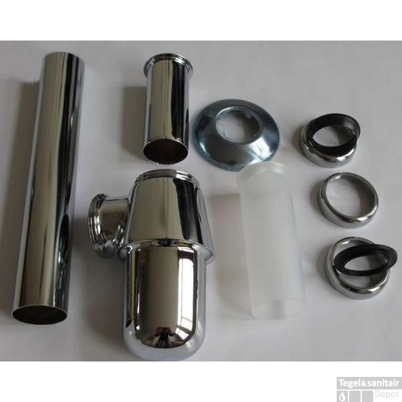 BWS Bekersifon Chroom Rond Inclusief Muurbuis En Rozet 5/4 x 32mm