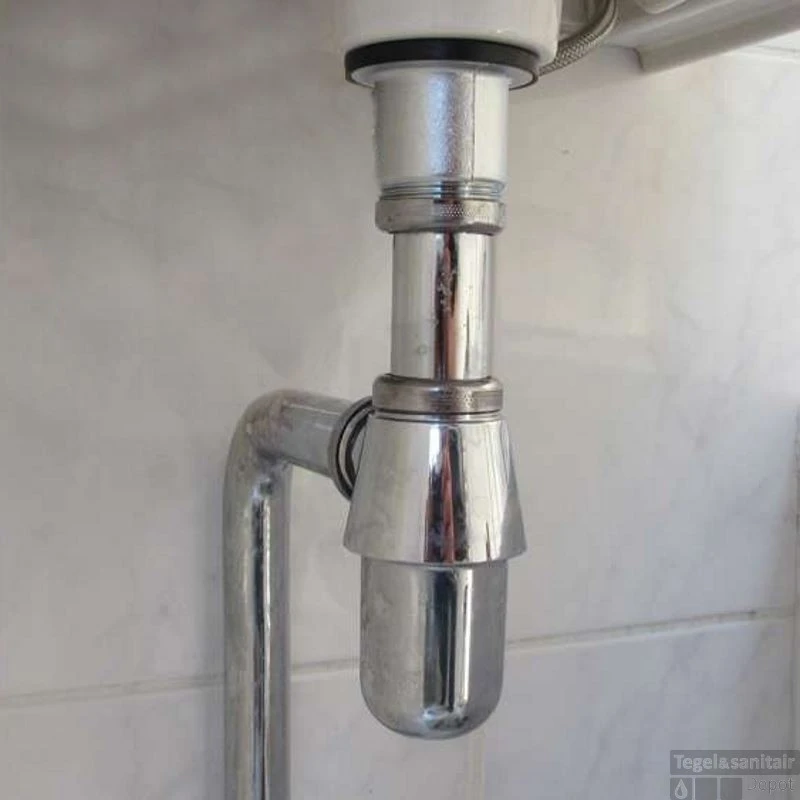 Deze messing verchroomde sifon is toepasbaar op alle soorten badmeubels of wastafels en word gebruikt om je wastafel of fontein aan te sluiten op je afvoer. Vanwege de makkelijke afschroefbare bodemdop is het eenvoudig om dit product optimaal schoon te houden. Deze sifon is van messing verchroomd metaal van zware kwaliteit. Door de sublieme afwerking zal dit product een trend zetten in uw badkamer.