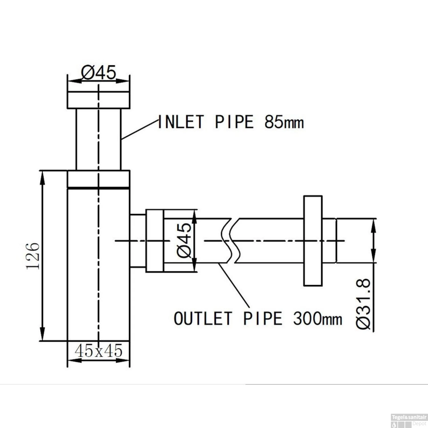 Specificaties BWS Bekersifon Luxe Vierkant 11/4″ RVS Look: