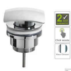 Deze Luxe clickwaste van Boss & Wessing heeft een fraai design, met dit vierkante model chroom 5/4″ heeft u het juiste product gevonden. Deze waste is gemakkelijk te installeren door middel van een bevestigingsschroef. Ook het bedienen van de waste is zeer eenvoudig. Deze clickwaste kunt u openen en sluiten door te drukken (klikken) op de afdekdop.