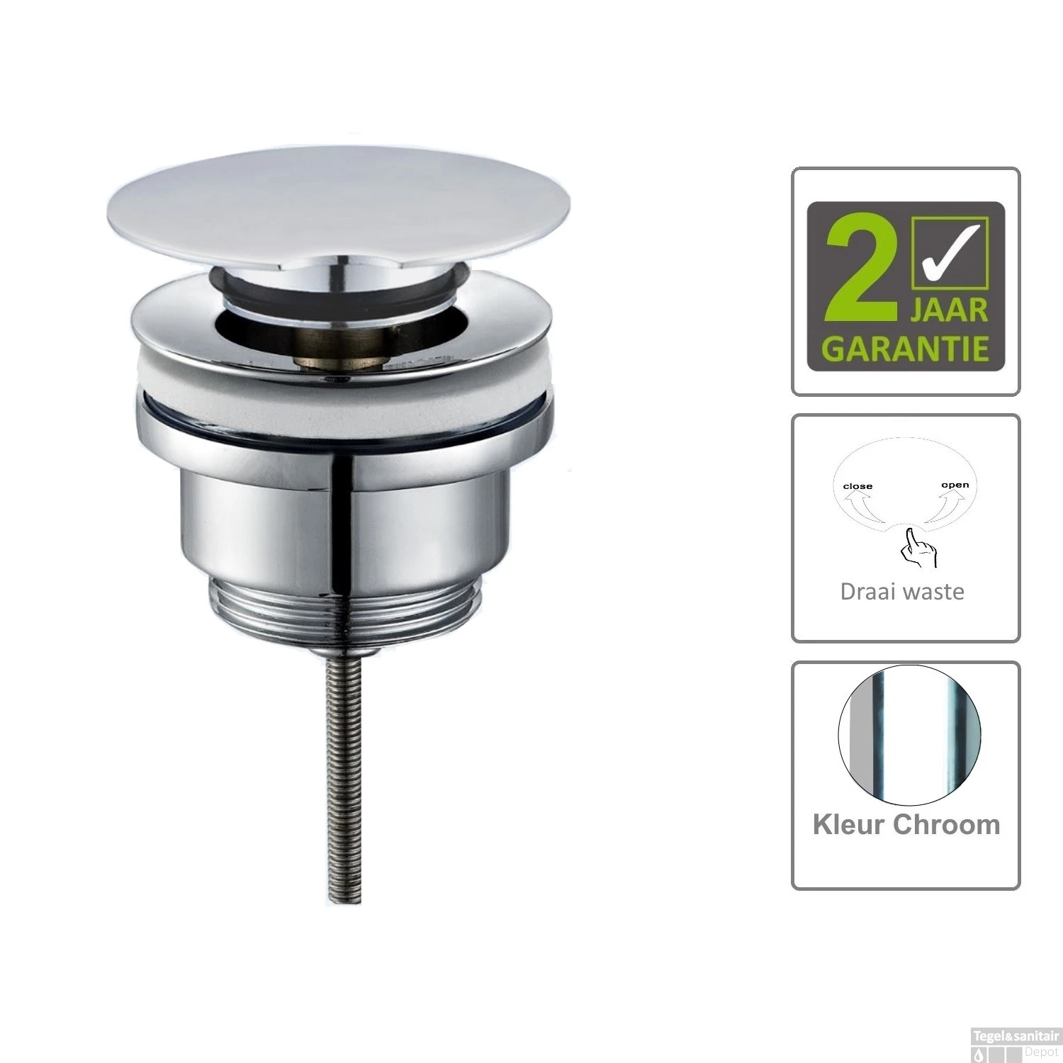 De Luxe Draaiwaste Laag Model Chroom van Boss & Wessing heeft een luxe korte clickwaste en kunt u gebruiken voor wastafels, fonteinen en waskommen welke een totale dikte hebben van 15 tot 60 mm! Buiten deze maten is dit artikel niet te verwerken.