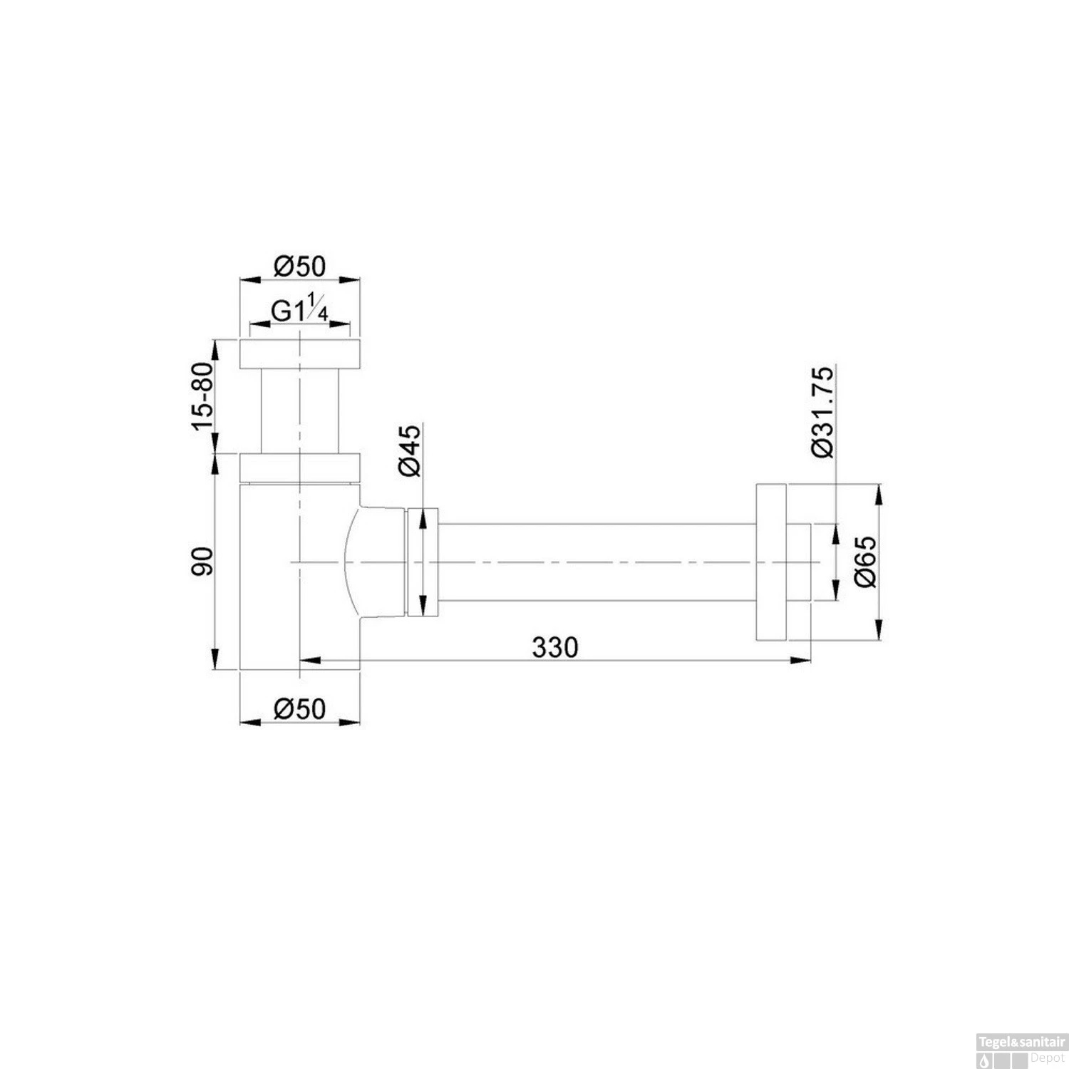 De sifon is in hoogte verstelbaar varierend tussen 1.5 en 8 cm bovenop de standaard hoogte van 9 cm.