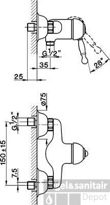 Sfeerbeeld Nostalgisch Thermostatisch Kleur RVS Serie Arcana Royal Merk Cisal Eengreepsbediening Hartafstand 150 Inbouw Met glijstang Artikelnummer AY0004412A Fabrieksartikelnummer AY0004412A