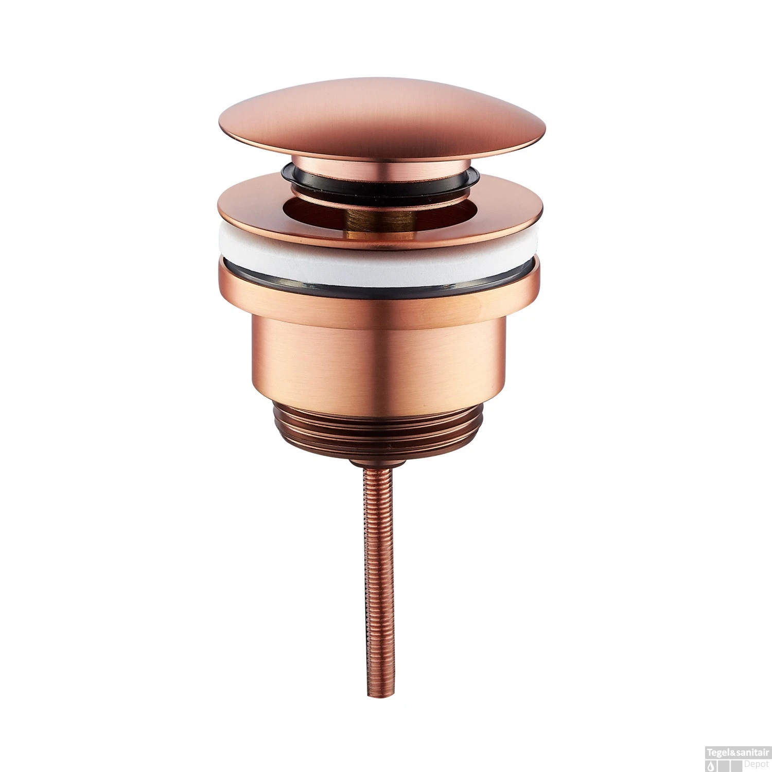 Deze bijzondere clickwaste van het merk Wiesbaden is afgewerkt in een geborsteld koperen kleur. Koper is een kleur die uitstekend tot recht komt in de moderne badkamer: mix het met zwart en het zorgt direct voor meer warmte in een ruimte. Combineer u het met wit, dan geeft het juist een fris uiterlijk.