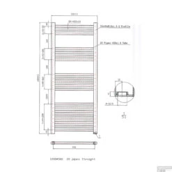 Specificaties Designradiator Plieger Cavallino Retto Dubbel 817 Watt Middenaansluiting 180×29,8 cm Wit:
