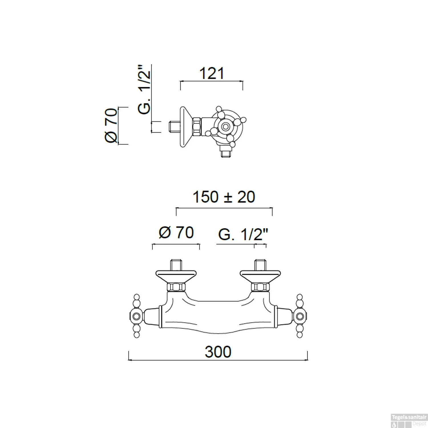 Specificaties Douchekraan Opbouw Sanimex Thermostatisch Kruisgreep HoH 15cm Brons: