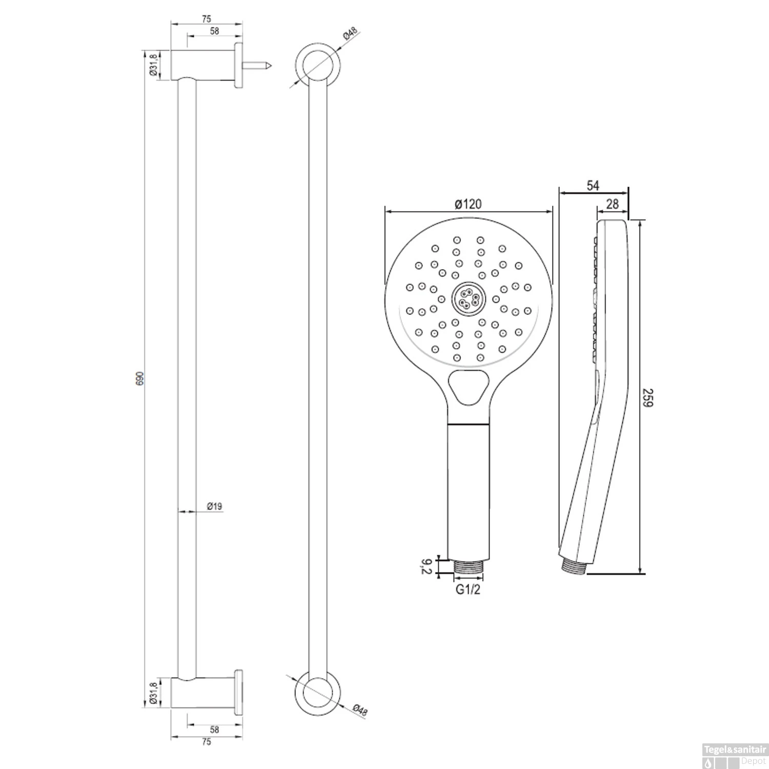 Dankzij de thermostaatfunctie is het makkelijk en snel om de gewenste temperatuur in te stellen. De kraan bedient u met de draaiknoppen. Deze kraan bevat een temperatuurblokkering bij 38°C. Zo is de kraan voor iedereen veilig te gebruiken. Inclusief S-koppelingen. Hij is van messing in de kleur geborsteld Koper. De doucheslang heeft een lengte van 150 cm, de handdouche heeft een lengte van 26,5 cm en de glijstang waarop de handdouche te bevestigen is heeft een lengte van 70 cm.
