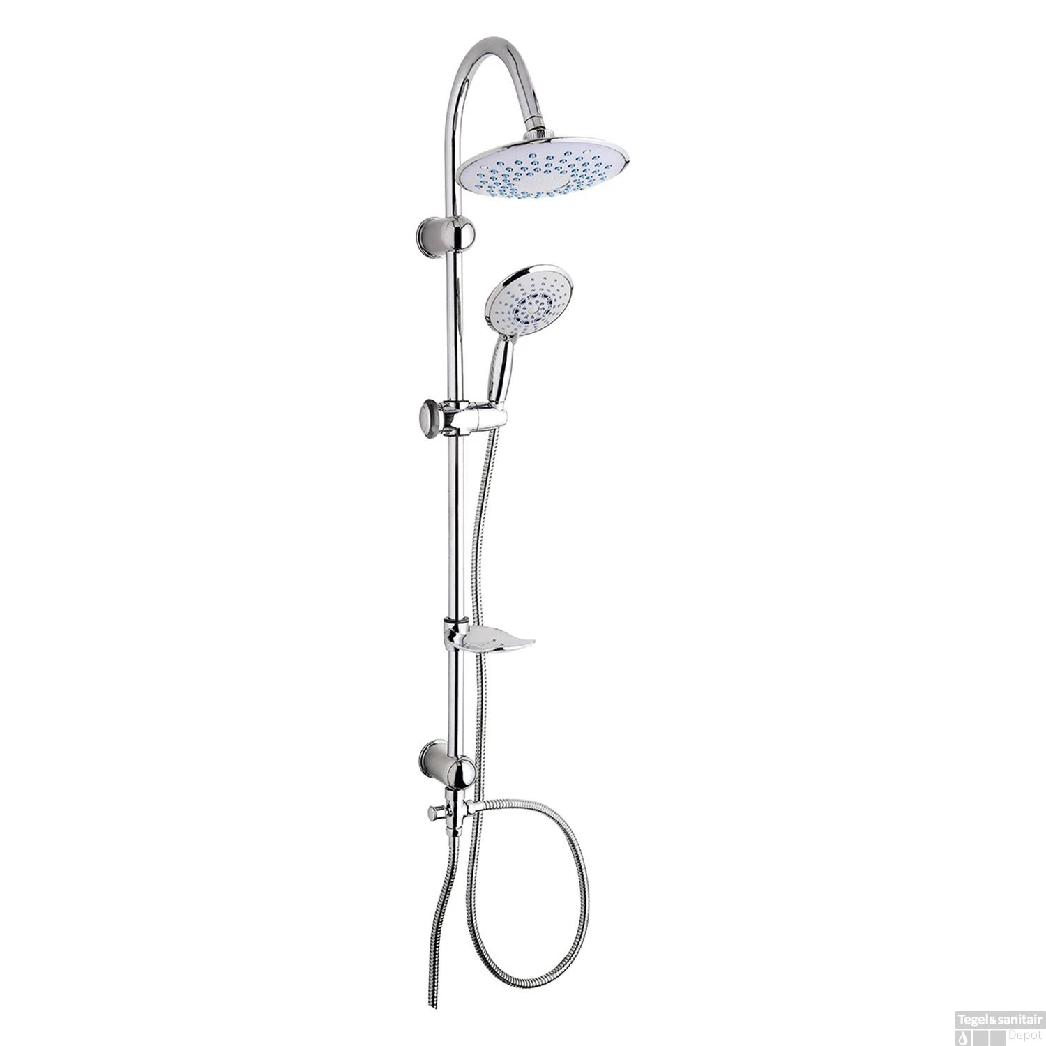 De handdouche en het zeepbakjes worden beiden gemonteerd op de glijstang. Het is niet mogelijk om de hoofd en handdouche te monteren op een andere glijstang (bijvoorbeeld; een reeds gemonteerde glijstang). De douchekoppen van de hand- en hoofddouche zijn beiden voorzien van antikalk rubbers om waterlekken te voorkomen.