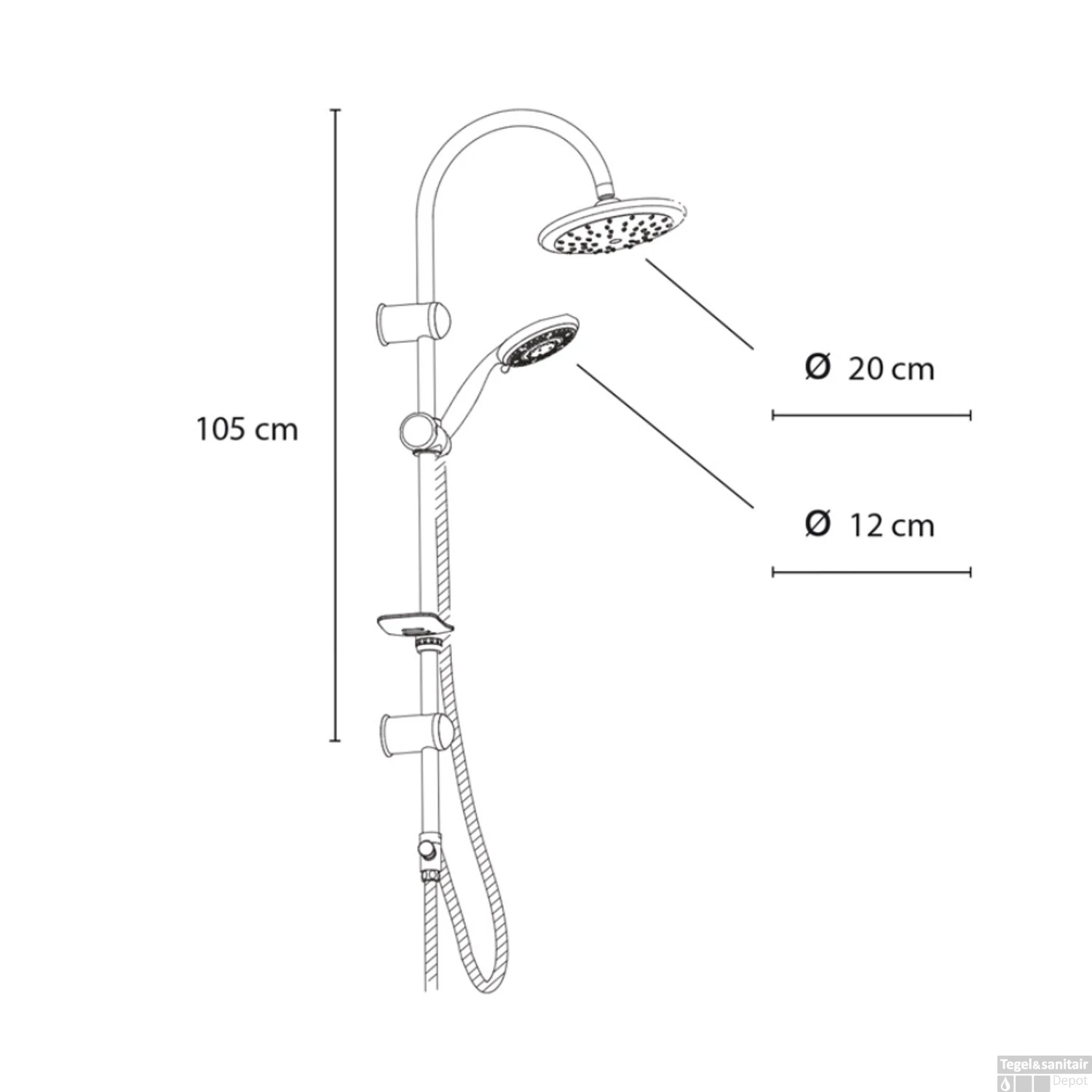 - – Afmeting handdouche: 12 cm