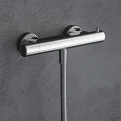 De praktische douchekraan voorzien van thermostaatfunctie. Het fijne van een thermostaatkraan, is dat het door u ingestelde temperatuur van het water exact gelijk blijft. Via thermostatische kleppen wordt het koude en hete water zo gemengd, dat het water een constante temperatuur heeft. Wanneer de watertoevoer wijzigt, reageert de thermostaat direct.