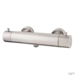 Deze douchethermostaat bedient u met twee draaiknoppen. Met de ene knop draait u de kraan open en dicht en met de andere knop bepaalt u de temperatuur. De kraan is van messing in RVS look. Hij heeft een lengte van 29,2 cm en een diepte van 10,45 cm.