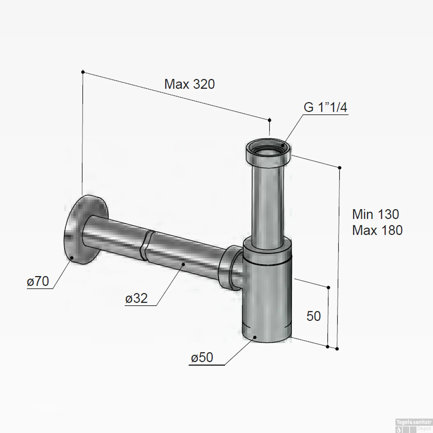 Specificaties Fontein Sifon Hotbath Cobber Rond Chroom: