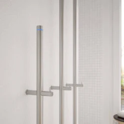 Deze radiator is 121,5 cm hoog en 60 cm breed. Hij is van staal in de kleur zilver met metallic finish.