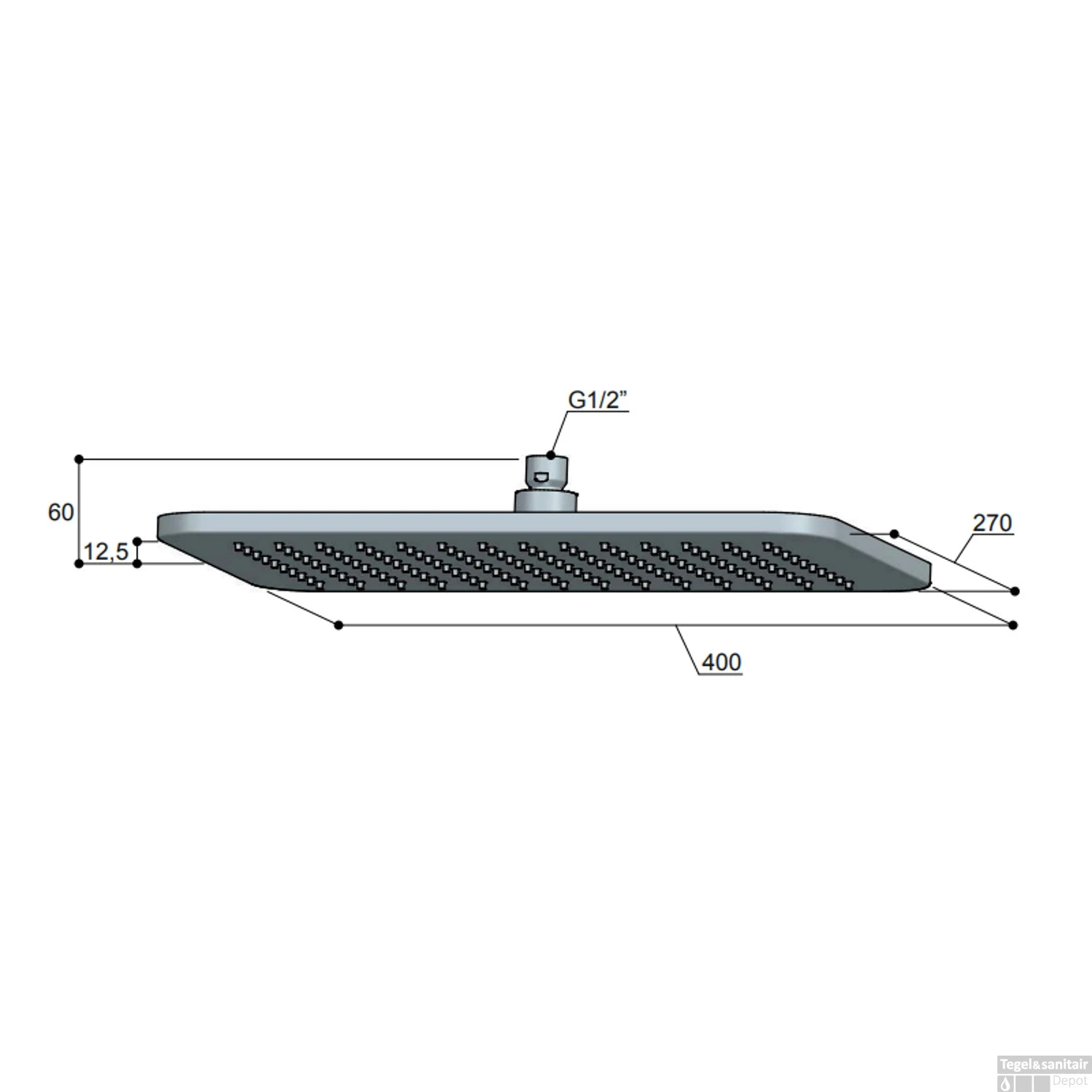 Specificaties Hoofddouche Hotbath Gal Rechthoek 27×40 cm Geborsteld Nikkel PVD