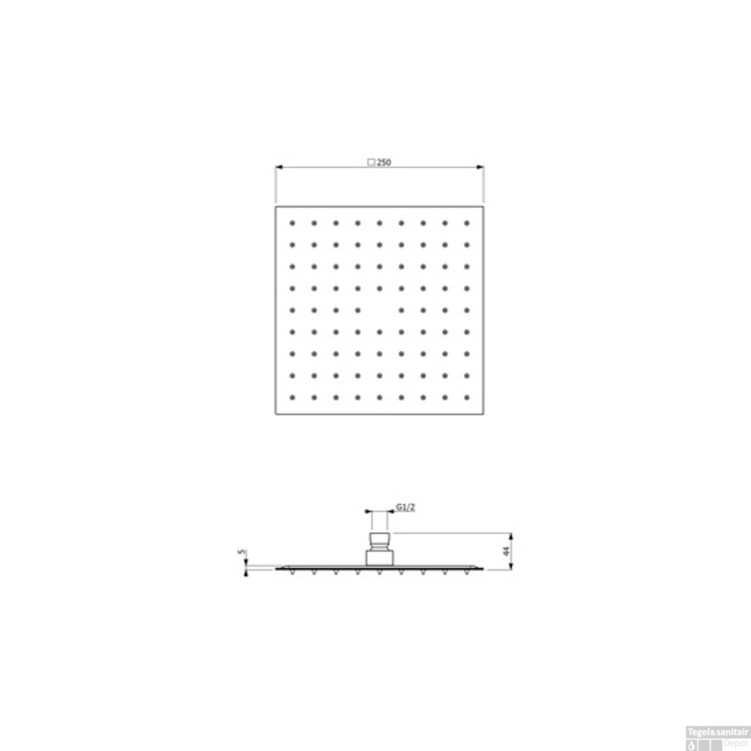 Specificaties Hoofddouche Plieger Napoli Vierkant 25x25cm Chroom: