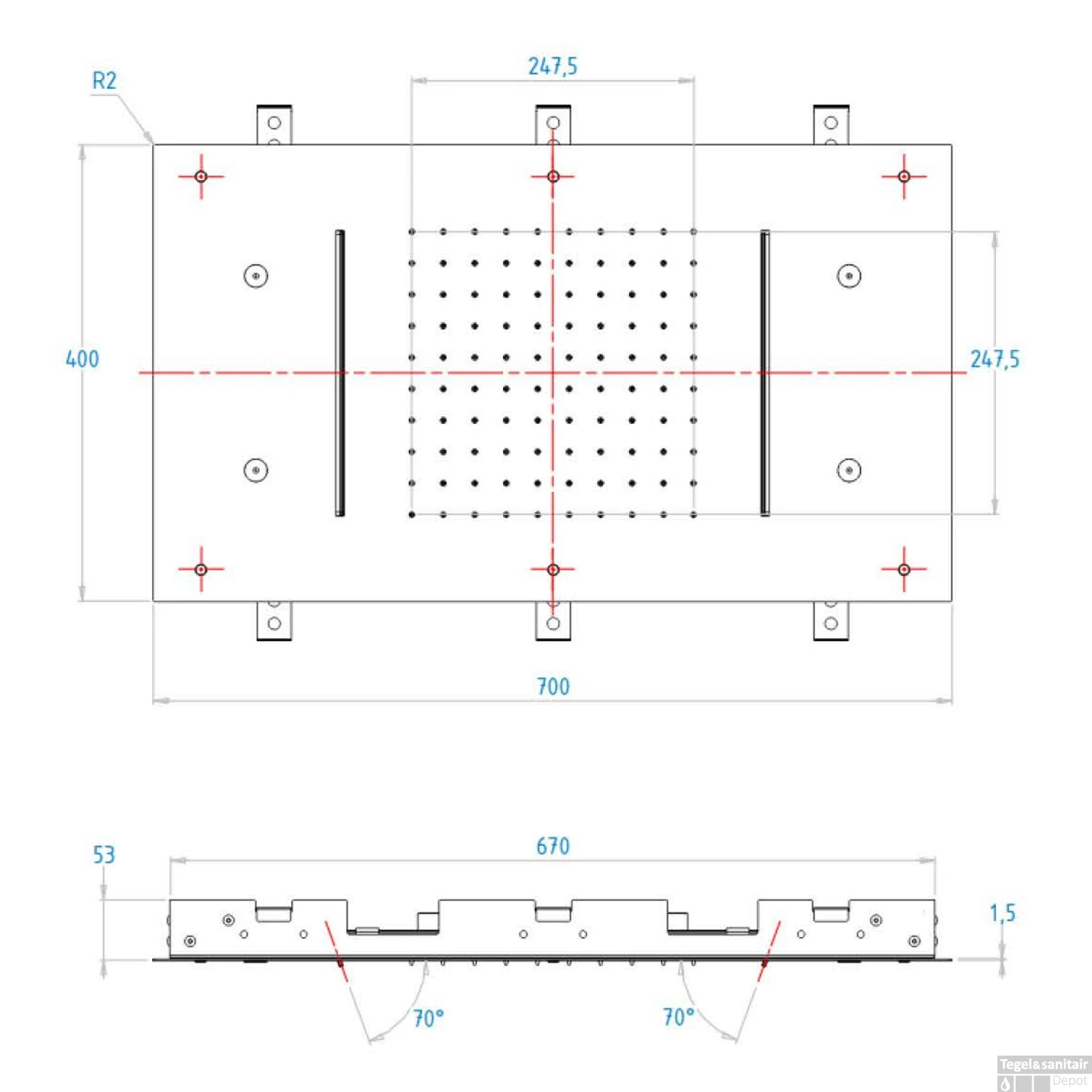 Hoofddouche Showerlicious Lagoo Nesso Met 2 Cascades En Nevel Functie 70 X 40 Cm RVS Chroom