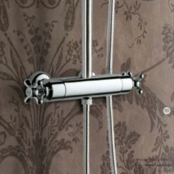 De Amice opbouw douchethermostaat heeft een hoh aansluiting van 15 cm en is gemaakt van verchroomd messing. Dit in combinatie met zijn klassieke design zorgt ervoor dat deze kraan een uitstekende keus is voor uw badkamer.