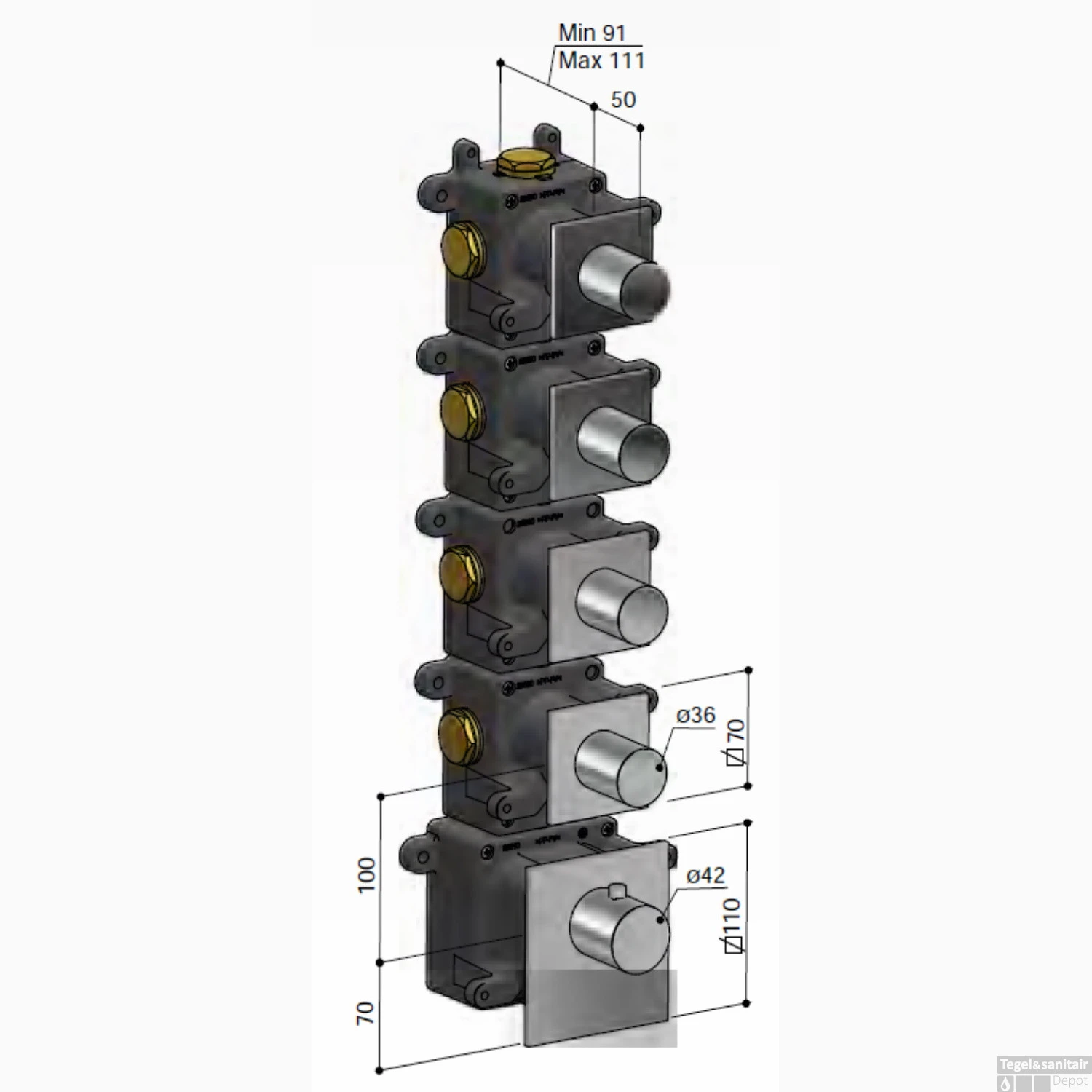 Specificaties Hotbath Mate Afbouwdeel High Flow 4 Stopkranen Vierkant Chroom
