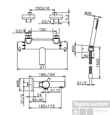 Huber Kiruna Bad/douchethermostaat Met Douchegarnituur Chroom KR.D23010.21
