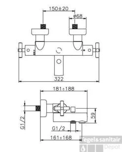 Merk Huber Serie Suite Hartafstand 150 Thermostatisch Met omstelinrichting Kleur Chroom Artikelnummer 23201NFHCR Fabrieksartikelnummer 23201NFHCR