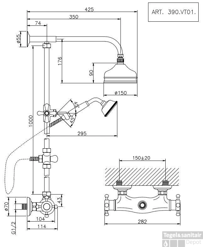 Merk Huber Serie Victorian Kleur Chroom Diameter hoofddouche 150 mm Thermostatisch Sfeerbeeld Nostalgisch Artikelnummer 390VT01HCR Fabrieksartikelnummer 390VT01HCR