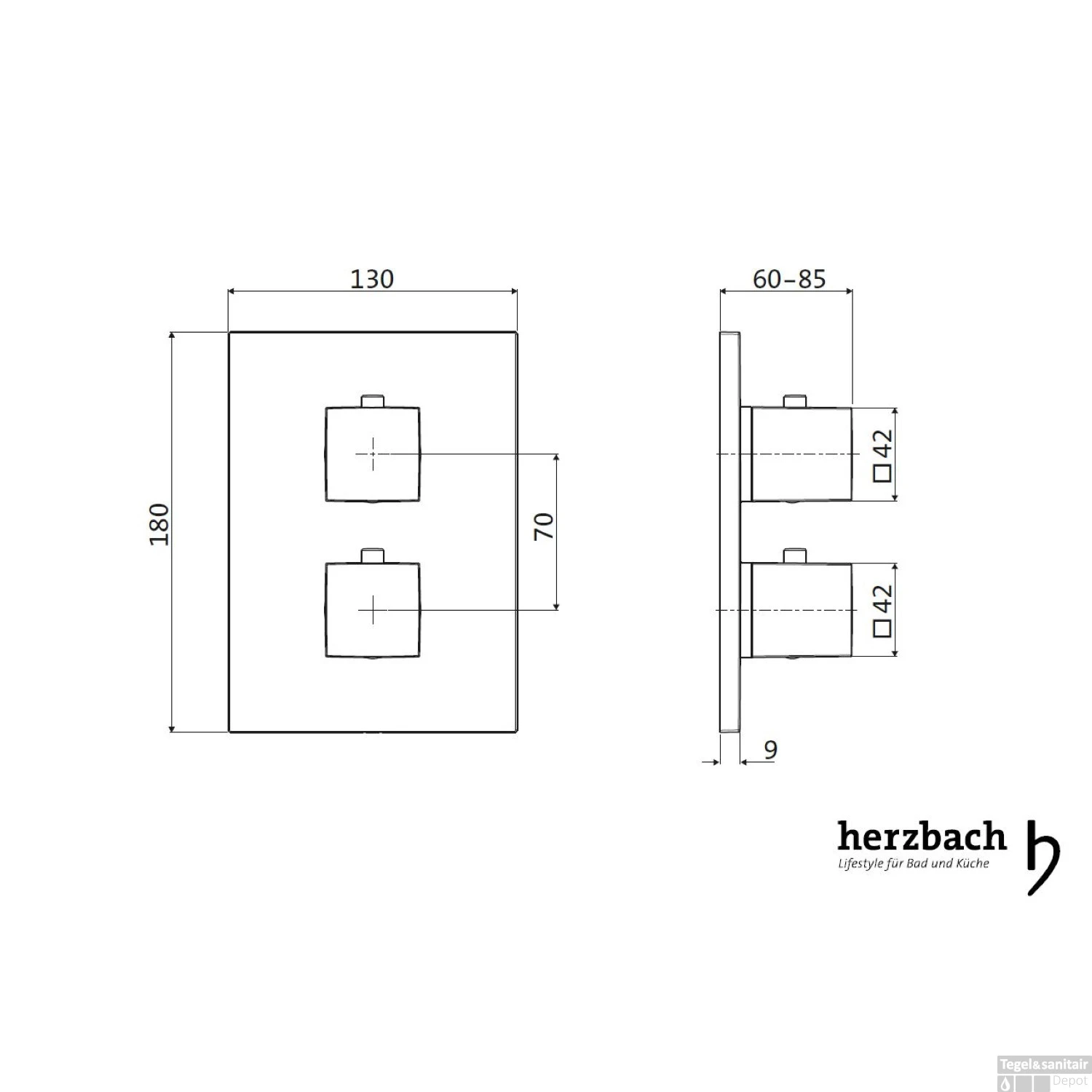 Specificaties Inbouw Thermostaatkraan Herzbach Living Rechthoek Chroom: