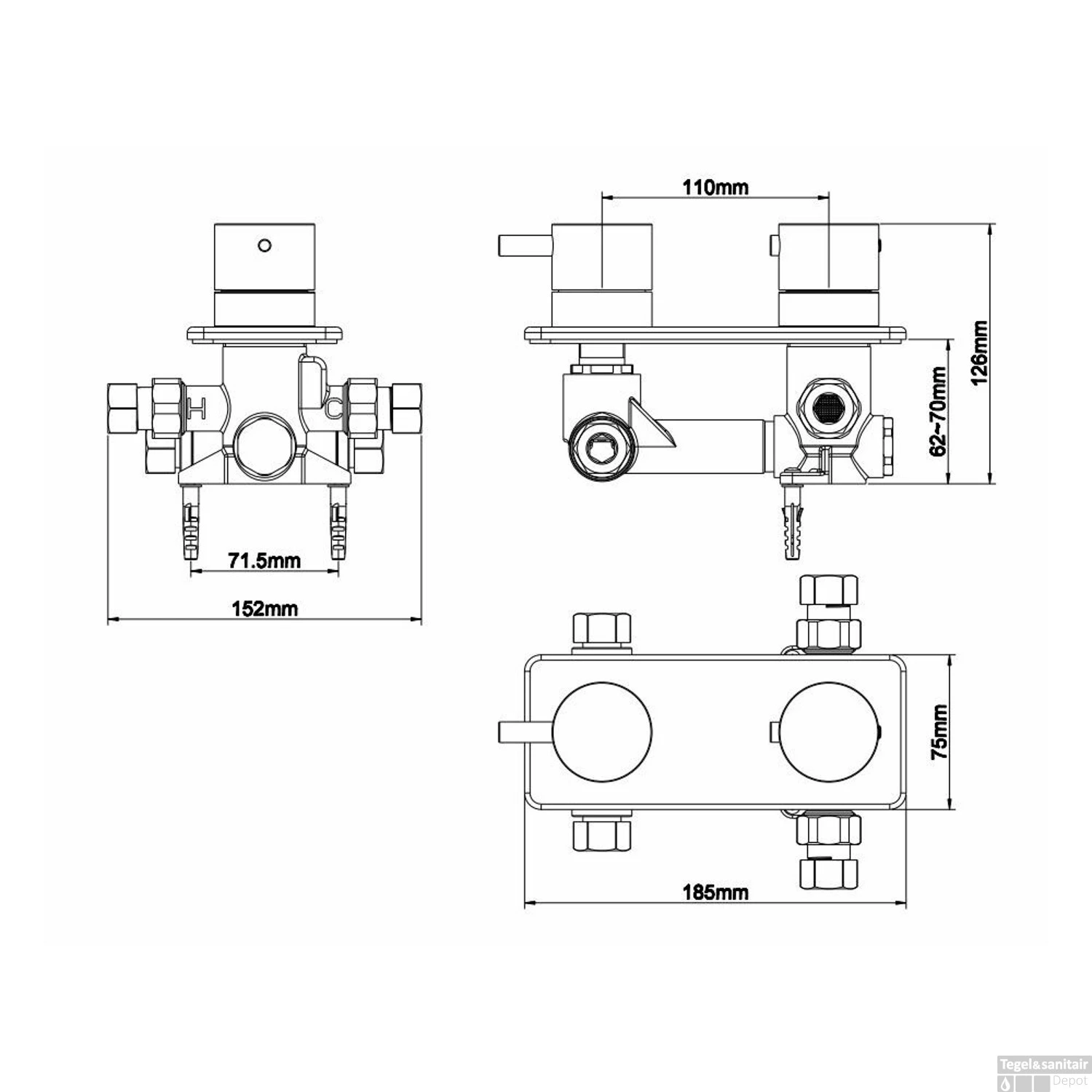 Specificaties Inbouwthermostaat Boss & Wessing Caral 2-weg Rond Mat Zwart: