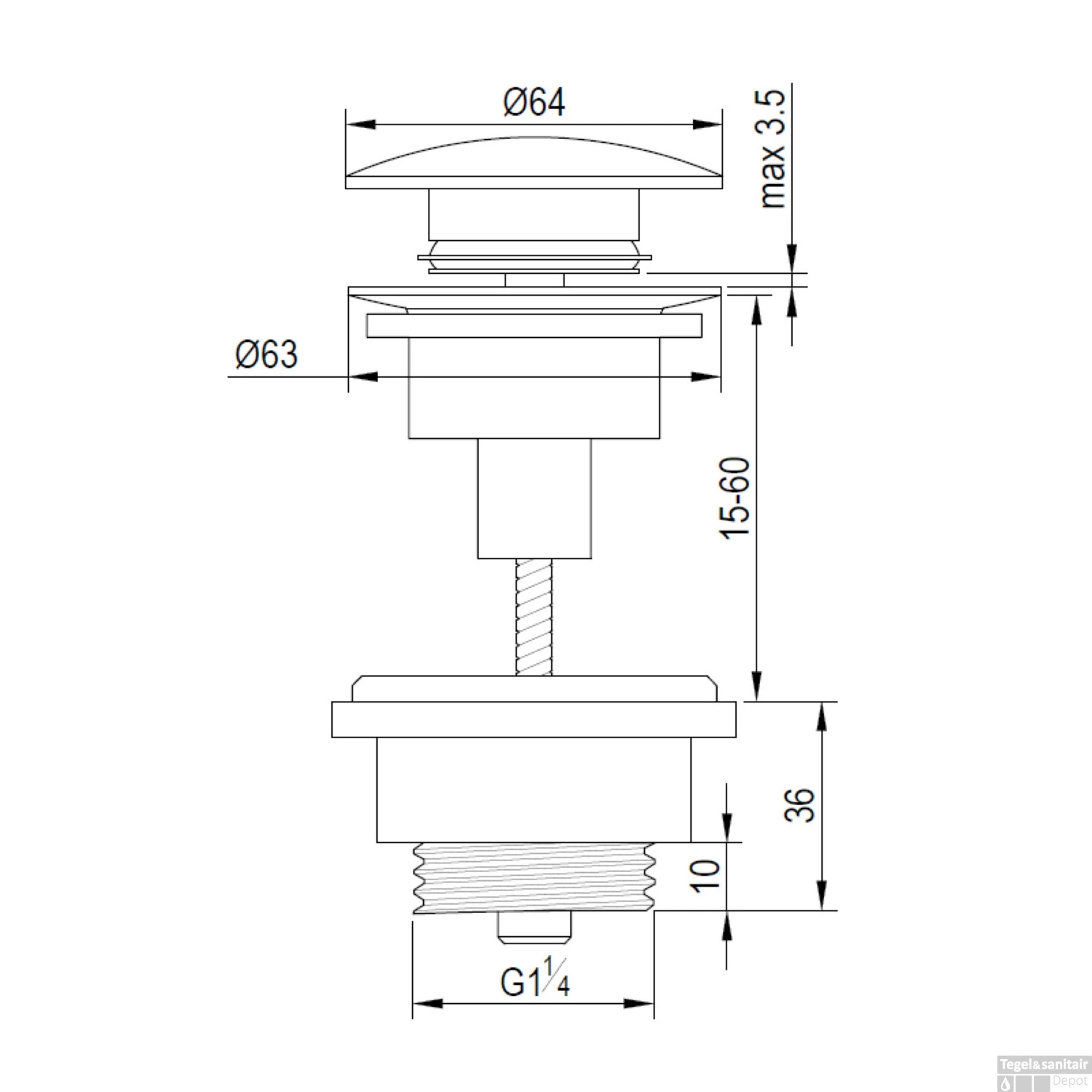 Specificaties Klikwaste Brauer Afvoerplug Messing Binnenwerk 5/4 Geborsteld RVS: