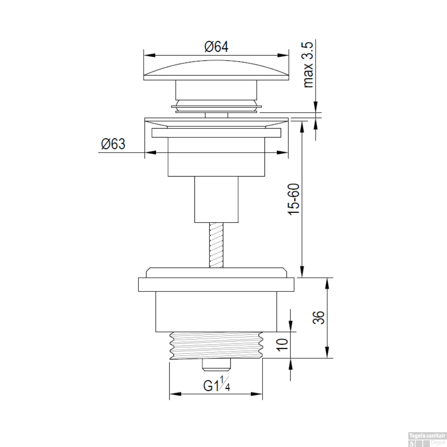 Specificaties Klikwaste Brauer Afvoerplug Messing Binnenwerk 5/4 Mat Zwart: