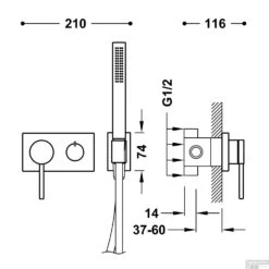 Douchekraanset Brauer Brushed Edition Opbouw Met Glijstang En Staafhanddouche Geborsteld RVS
