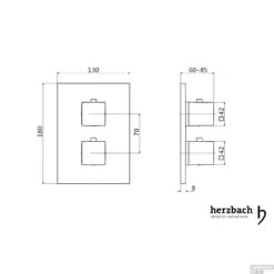 Inbouw Thermostaatkraan Herzbach Living Rechthoek 2-Weg Omstel Chroom (afgeronde Hoeken)