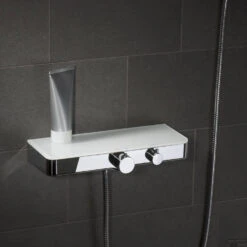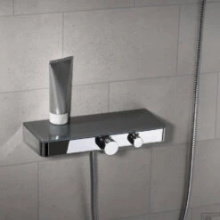 Thermostatische Douchekraan Hotbath Cobber @Work Inbouw Met 2 Stopkranen Geborsteld Nikkel