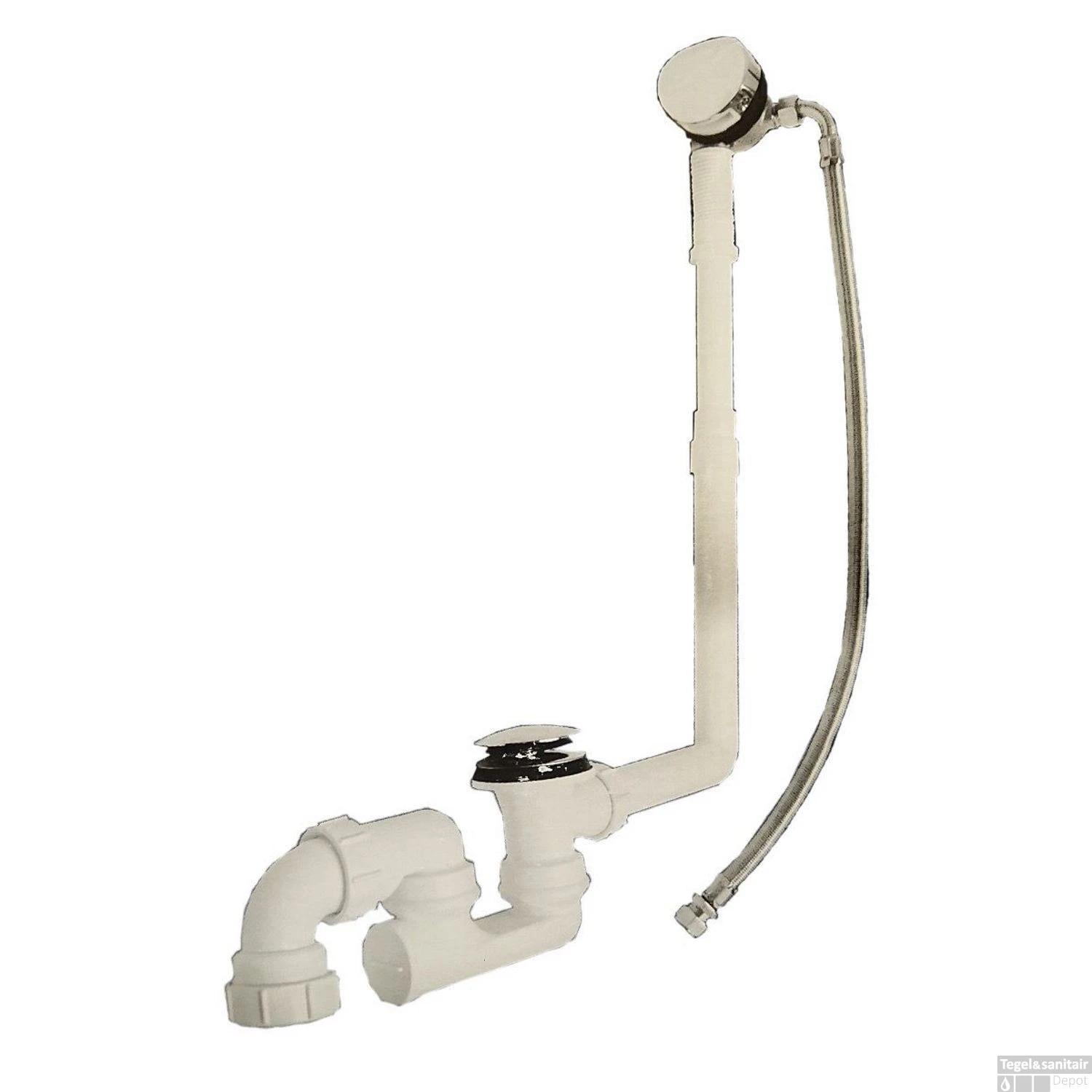 Luxe universele badafvoer met een overloop en vulcombinatie. Te bedienen door middel van een draaiknop. De combinatie heeft een vul mogelijkheid uit de overloop in de zijkant, u kunt uw bad vullen zonder gebruik te maken van een externe kraan. Hierdoor heeft u een exclusieve afwerking met inbouwkraan. De afvoer is compleet met overloop en 52 mm afvoerplug.