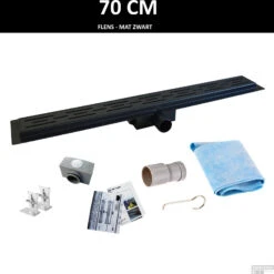 Specificaties Zwarte Douchegoot met Flens en Sifon 70x7cm 6,7cm Diep: