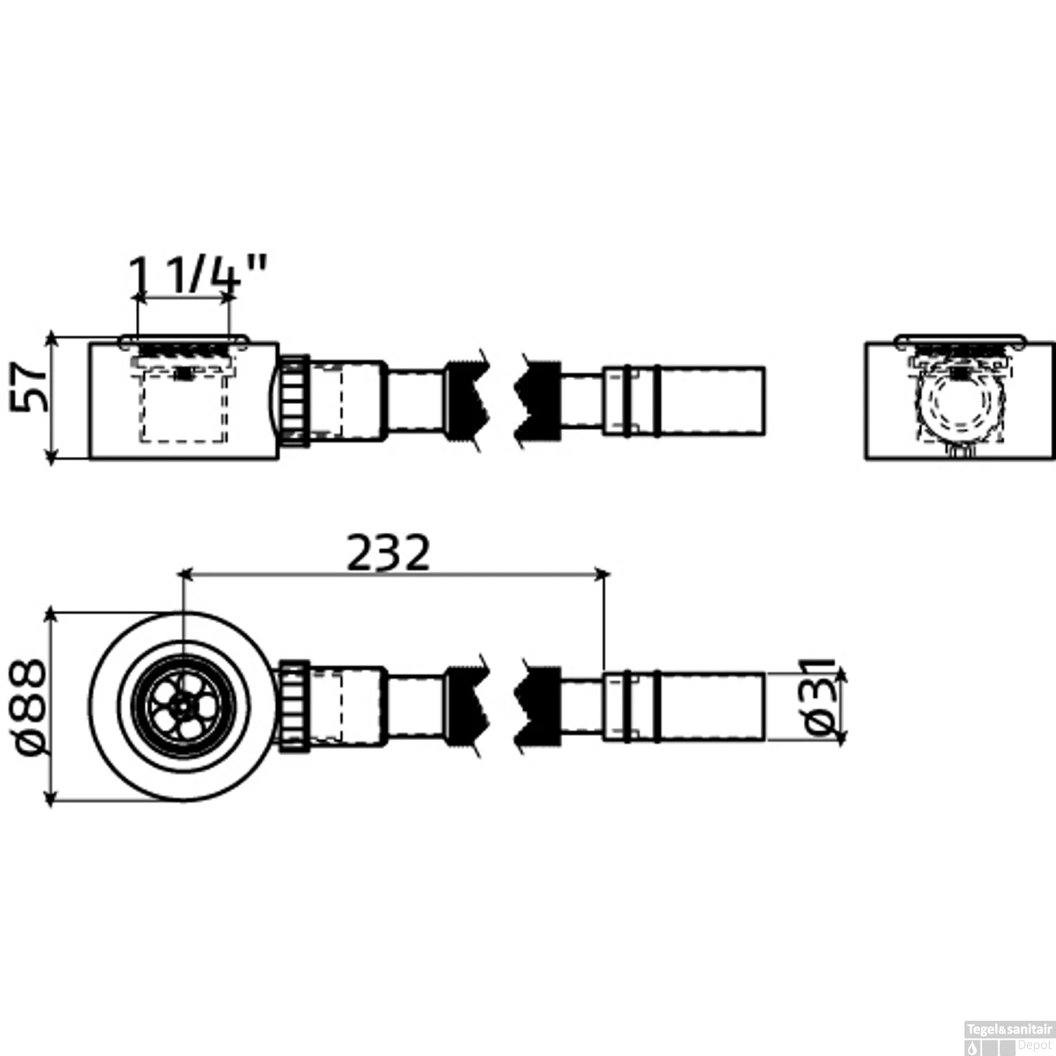 Voor de meubelserie Wash Me ontwikkelde Clou een ondiepe sifon. Hierdoor kan men bij deze meubelserie het volledige oppervlak van de lades gebruiken. Geschikt voor 11/4″ en M6 aansluitingen. Het sifon is verchroomd ABS en heeft een flexibele afvoerslang. Universeel toepasbaar.