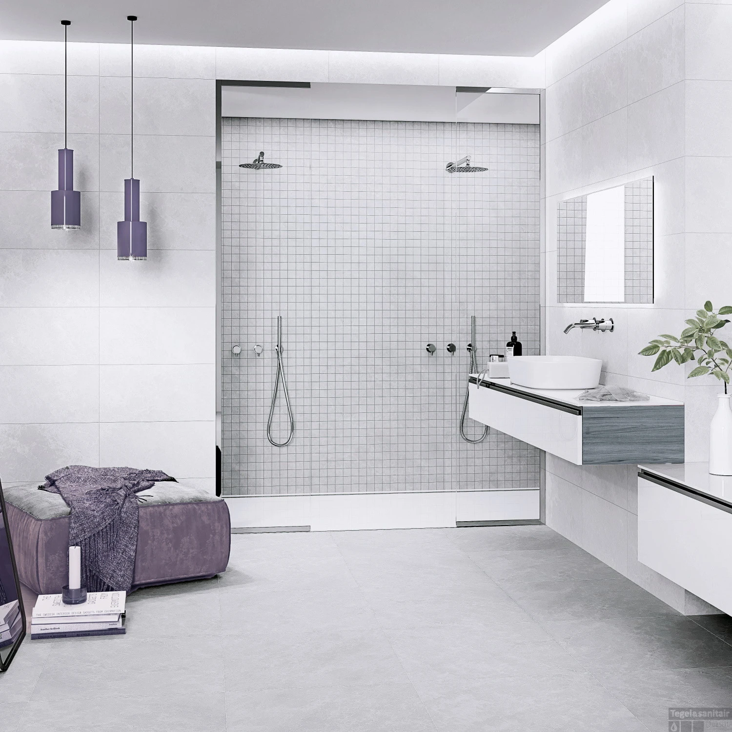 Met de Mozaïek krijgt de ruimte een unieke uitstraling omdat het accent wordt gelegd op de kleine steentjes. U kunt echt spelen met Mozaïek. Vul er een nis mee, tegelrooster van uw douchegoot maar een volledige wand kan natuurlijk ook. Daarnaast kunt u spelen met de kleur voeg. Een lichte voeg brengt weer een heel ander geheel dan een donkere voeg. Combineer de voeg met de kleur van een andere tegel en u creëert weer één geheel door met dezelfde kleur te werken.