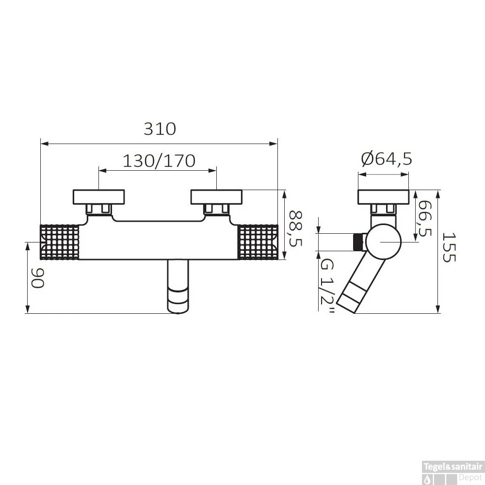 Specificaties Opbouw Badkraan GRB Aura Thermostatisch Chroom: