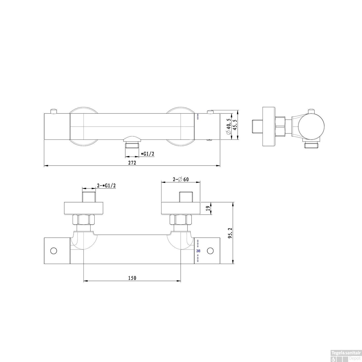 Specificaties Opbouw Douchethermostaat Best Design Nancy Zagaro Mat Goud: