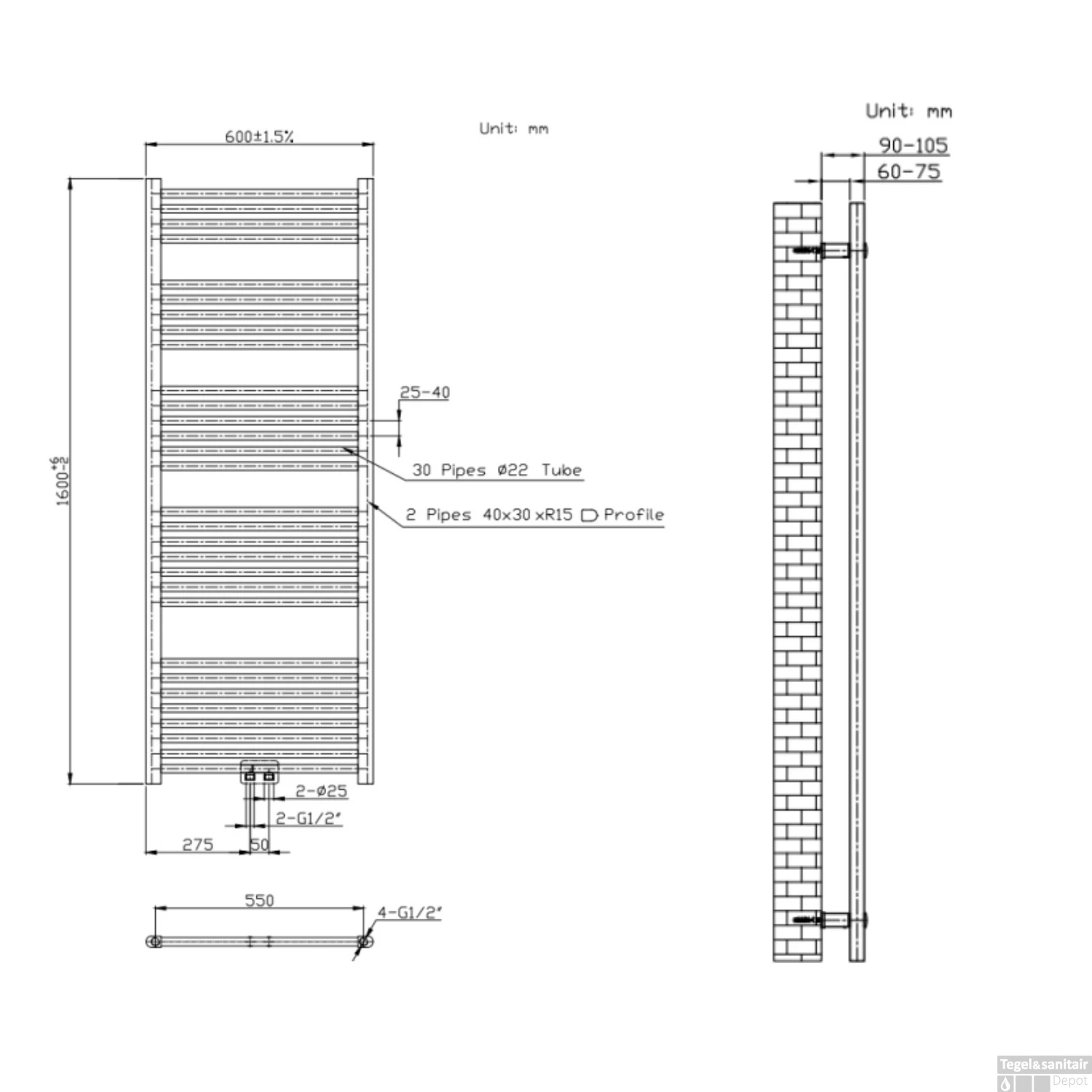 De radiator is gemaakt van hoogwaardig staal, hierdoor is een maximale warmte-afgifte gegarandeerd. Hij heeft een formaat van 60x160cm en een capaciteit van 761 Watt. Daarnaast is de radiator uitgerust met een middenaansluiting en kan met behulp van de aansluitset aangesloten worden op vrijwel iedere aansluiting. Verder is de radiator voorbereid om op 6 punten aangesloten te kunnen worden.