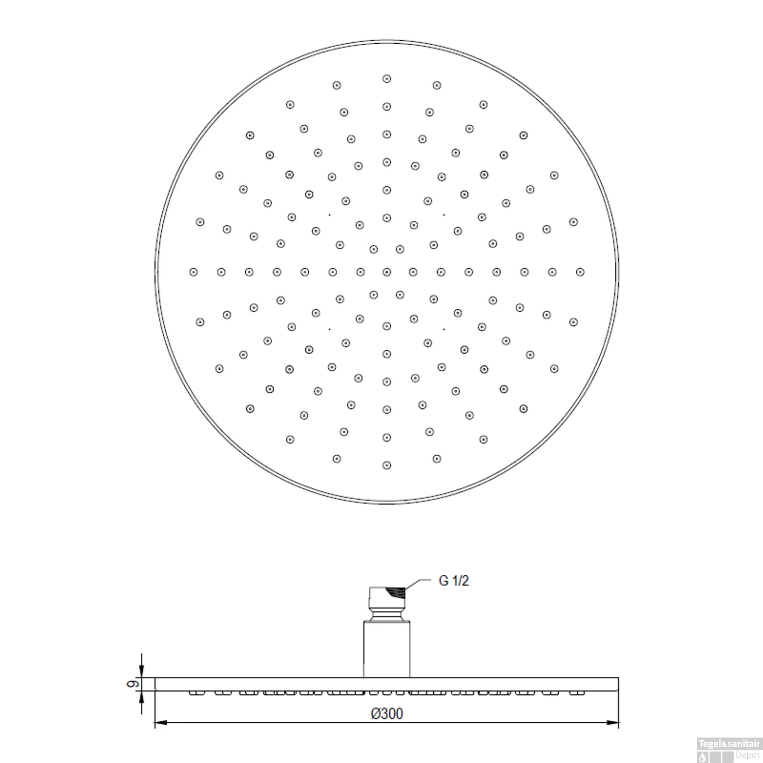 - Diameter douchekop: 30 cm