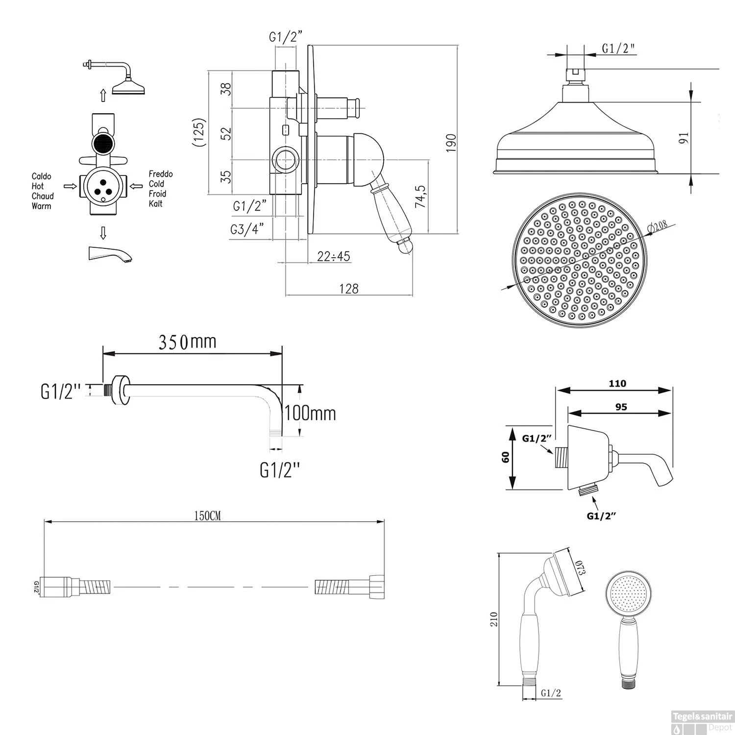 Specificaties Regendoucheset Sapho Kirke Inbouw Met Handdouche Chroom: