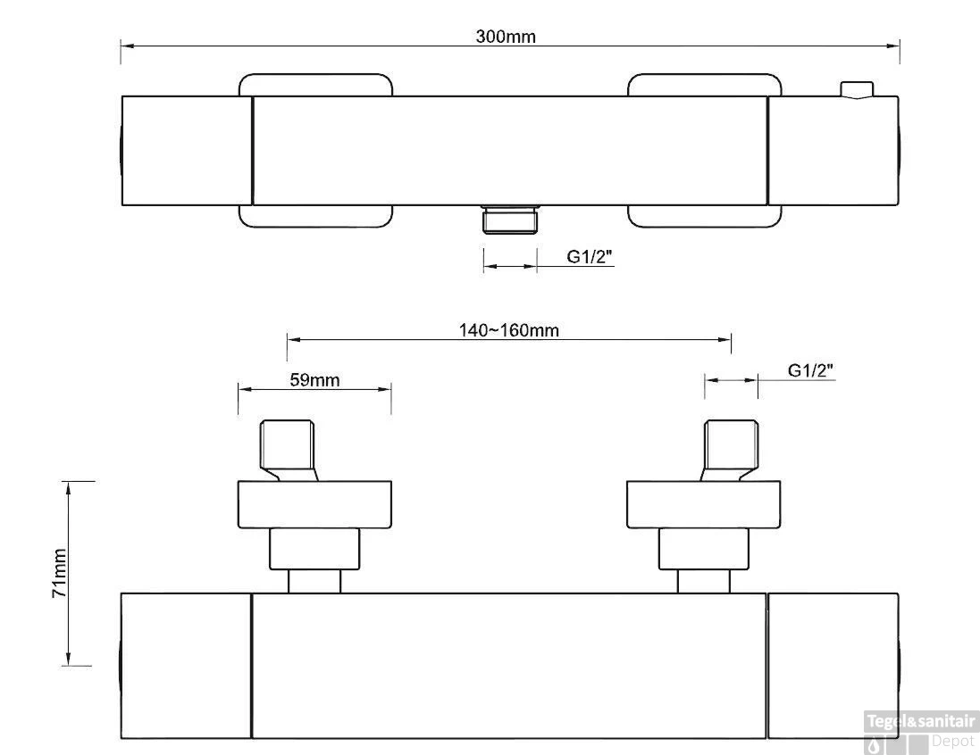 Rombo Thermostatische douchekraan Vierkant Chroom