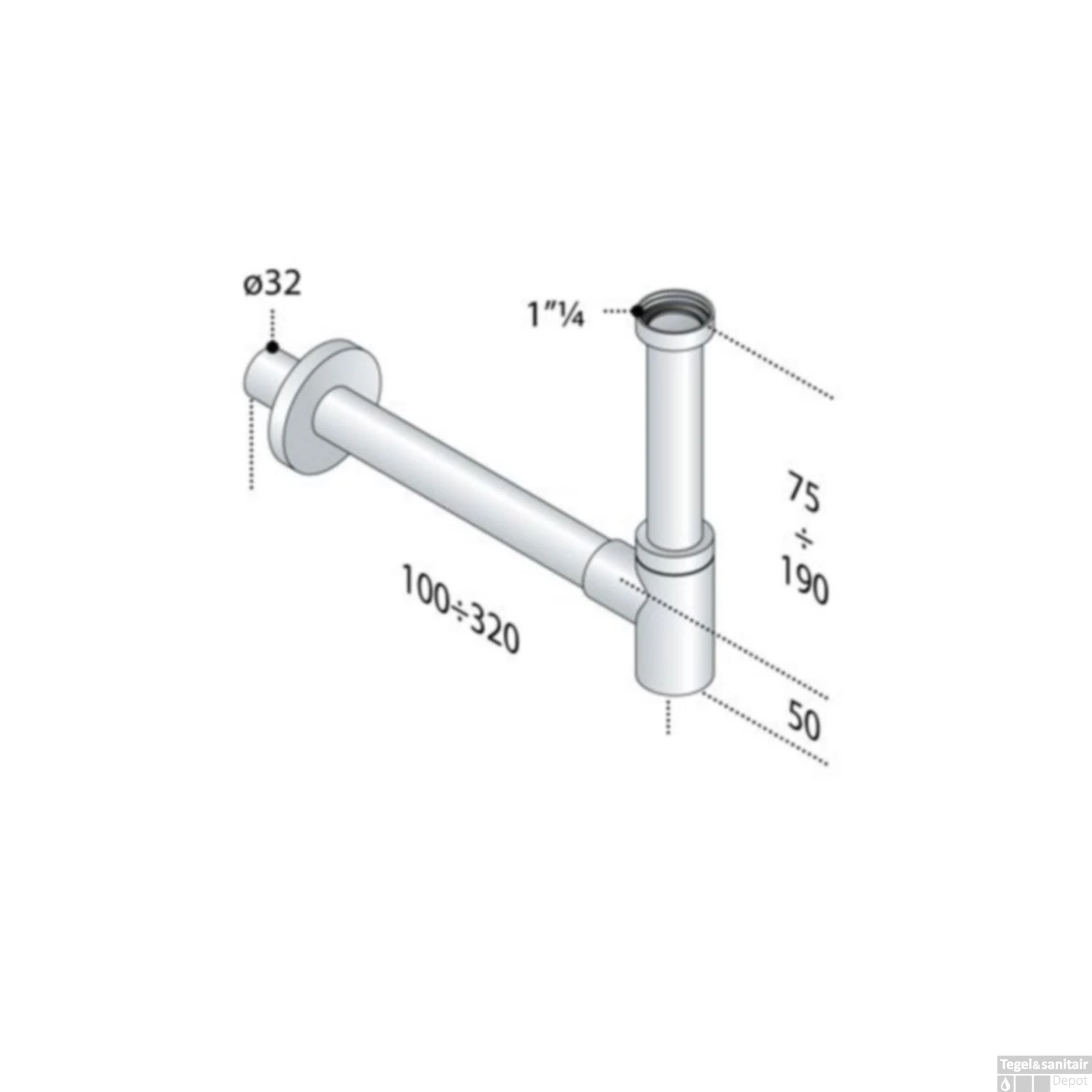 Sifon Mini met Muurbuis 25cm 5/4″ met Rozet Chroom